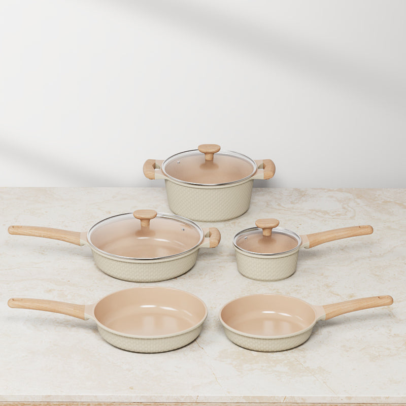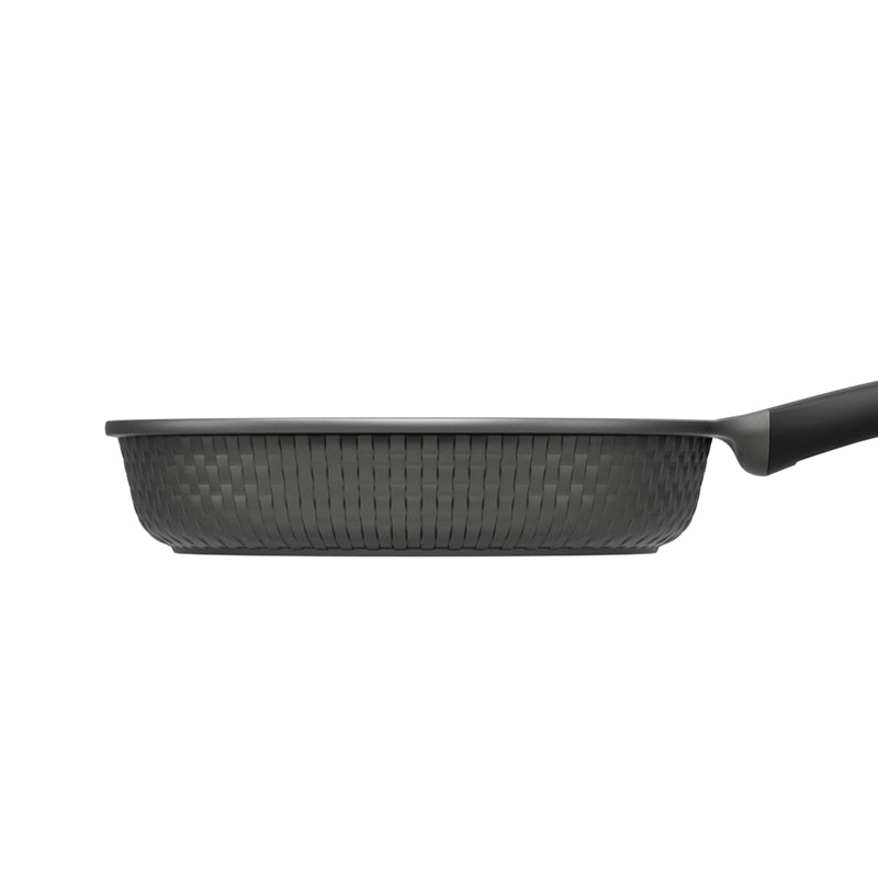 Our die-cast pan features a sophisticated basket-weave design, offering a unique artisanal look that elevates your kitchen aesthetics while providing a pleasing tactile grip.